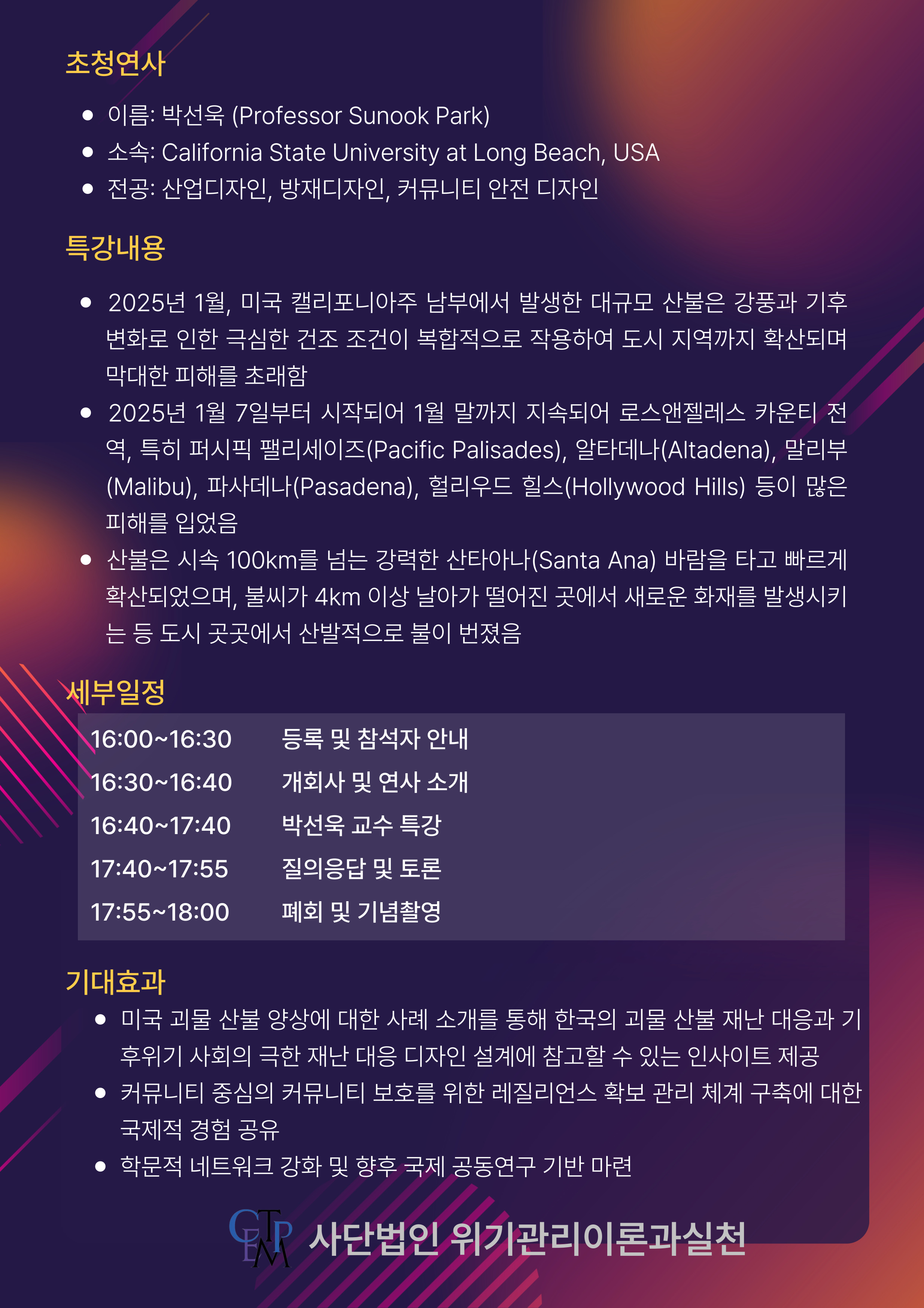 | 제목 | 제9차 Global Disastronomy Workshop(해외 위기관리학자 초청 특강) | ||