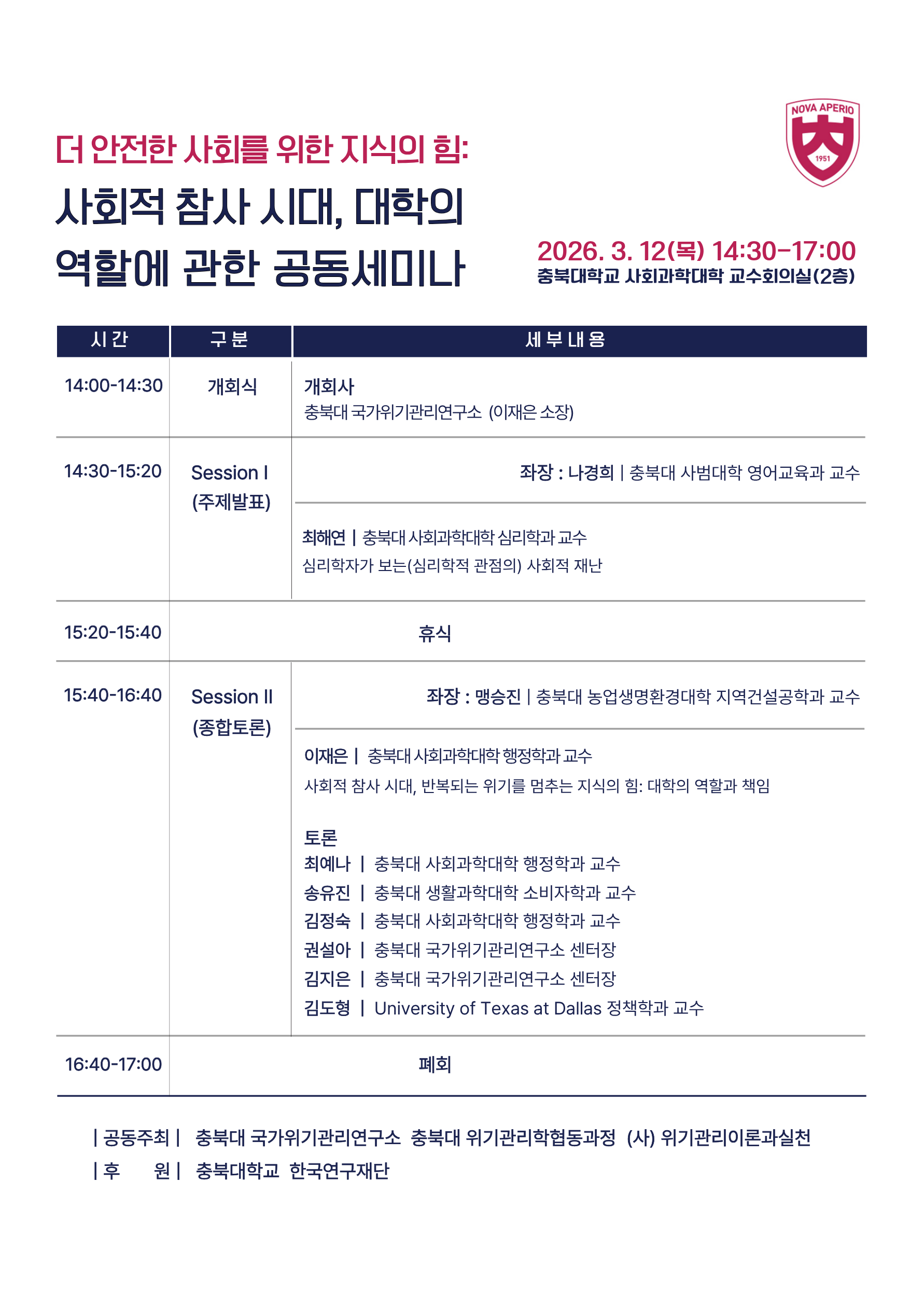 | 제목 | 더 안전한 새회를 위한 지식의 힘: 사회적참사 시대, 대학의 역할에 관한 공동세미나 개최 | ||